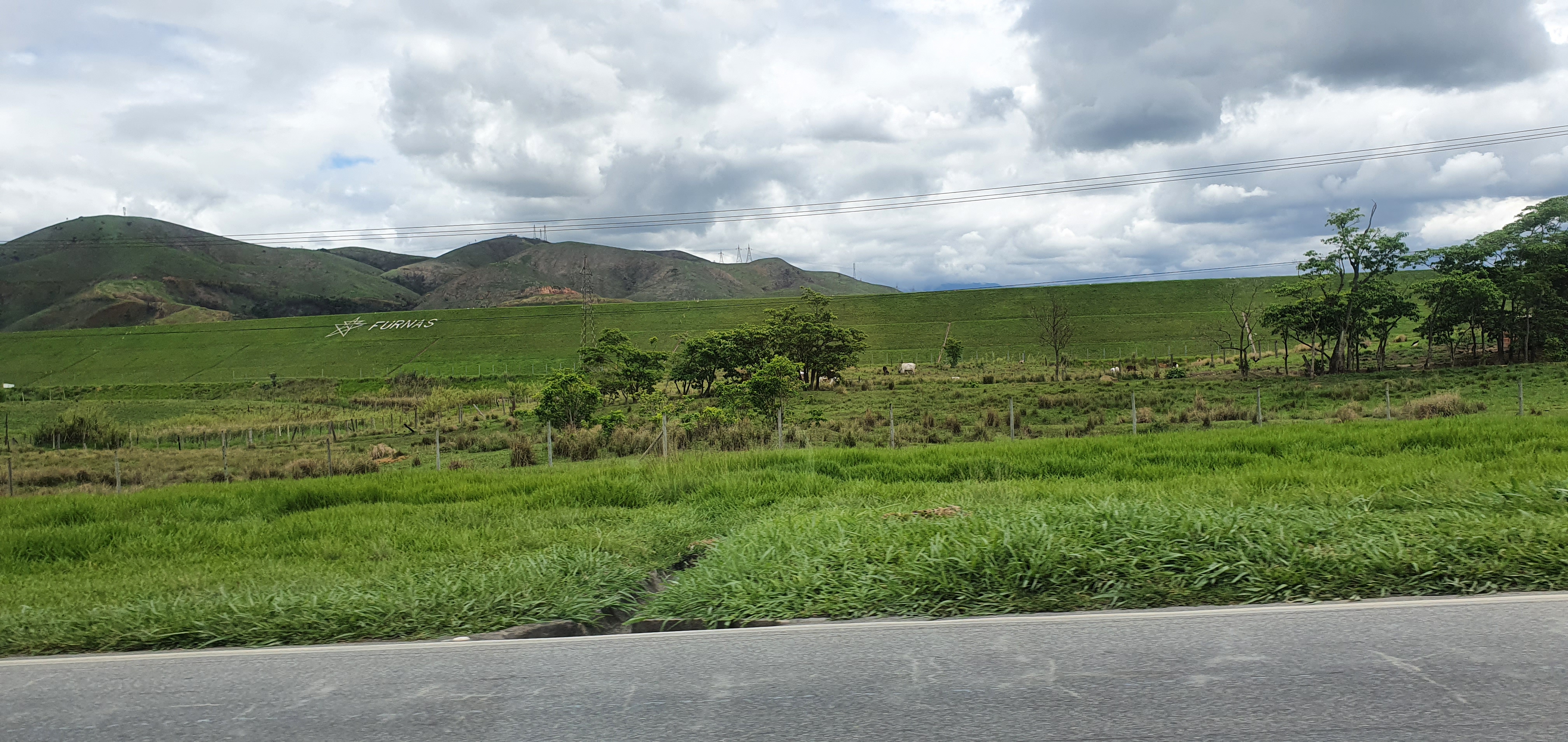 Tudo muito verde e pouca plantação. Somente pastagem para gado.