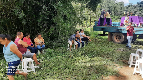 Uma notícia desagradável. "Branco" estava com seu caminhão para montar o altar na cachoeira, para a celebração, mas não conseguiu chegar até ela.